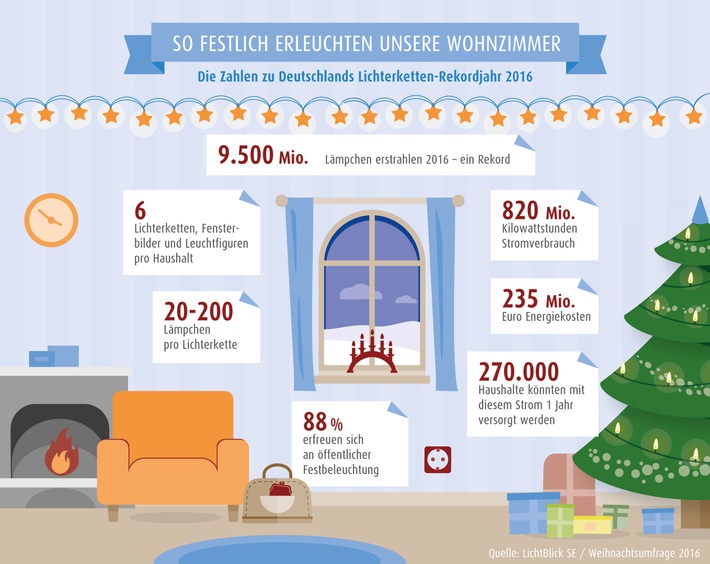 9,5 Mrd. Lämpchen: So festlich erleuchten unsere Wohnzimmer - Weihnachts-Umfrage von LichtBlick.