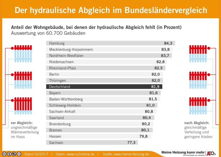 Jährlich 5,3 Mio Tonnen CO2 vermeidbar / Förderung macht hydraulischen Abgleich noch lukrativer / Neuer Bundesländer-Vergleich mit Infografik / Der hydraulische Abgleich im Bundesländervergleich.