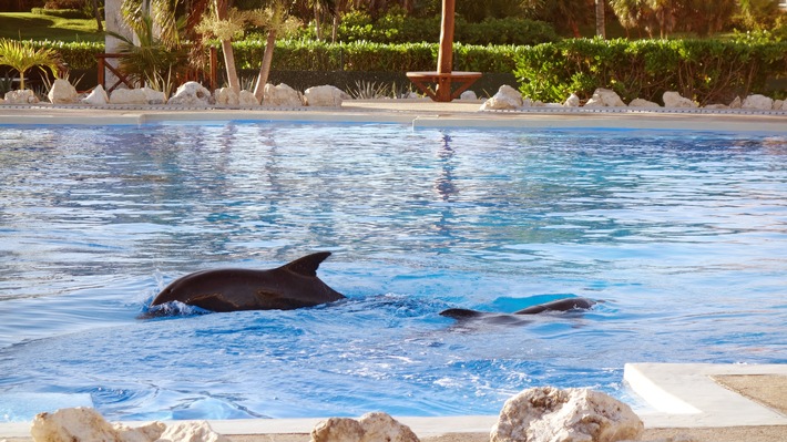 Man kann die Delfine streicheln, sich durchs Becken ziehen lassen, Trainer spielen... Kinder werden laut Prospekt aufgefordert, die Tiere zu küssen! "Für die Delfine ist dies der pure Stress. Sie haben keine Rückzugsmöglichkeiten, müssen sieben Tage die Woche von früh bis spät zum Vergnügen der Hotelgäste bereit sein", erklärt der GRD-Biologe Ulrich Karlowski. Ähnlich sieht es in Delfinarien der Türkei, der Dominikanischen Republik oder auf Mallorca und Teneriffa im dortigen "Loro Parque" aus.