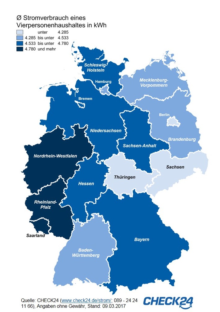Quelle: CHECK24 (www.check24.de/strom/; 089 - 24 24 11 66), Angaben ohne Gewähr, Stand: 09.03.2017 /