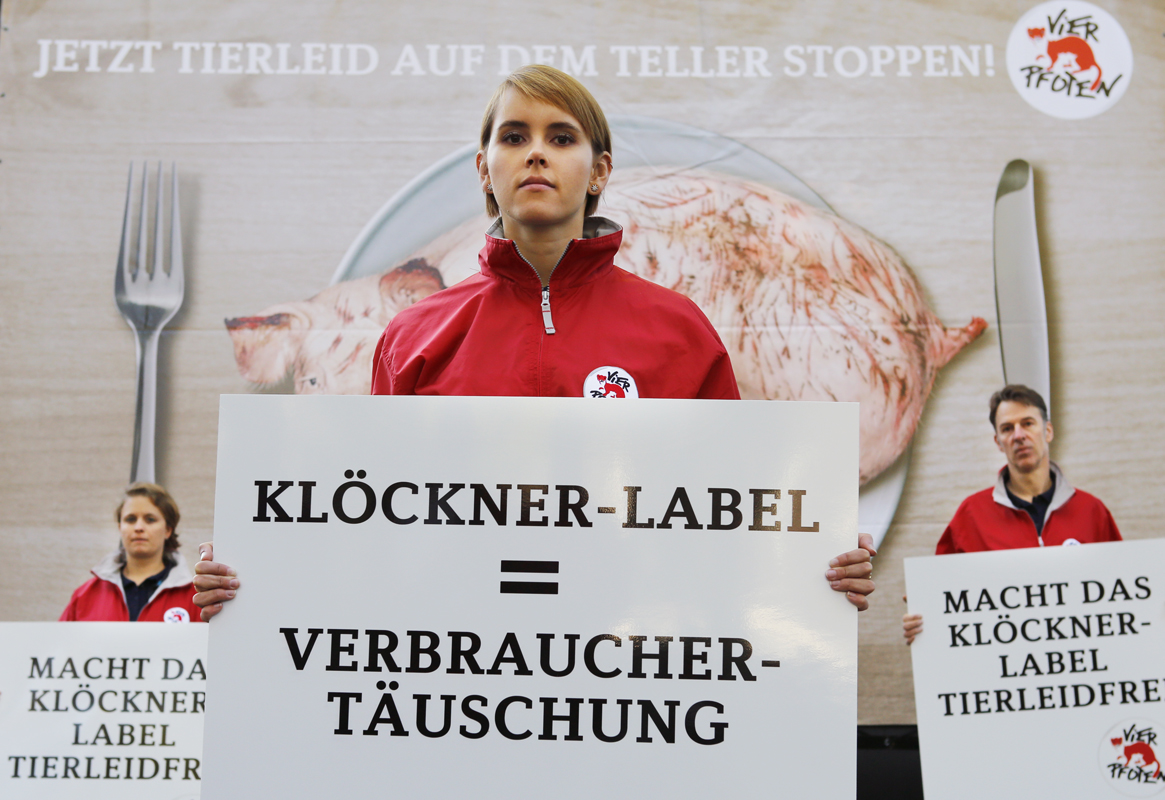 Bad Sassendorf / Hamburg, 27. September 2018 – Mit einer überdimensionalen Plakatwand hat die Stiftung VIER PFOTEN heute die AgrarministerInnen der Länder aufgefordert, sich gegen das geplante staatliche Tierwohlkennzeichen der Bundesregierung und für eine gesetzlich verpflichtende Kennzeichnung aller tierischen Produkte auszusprechen. Das Tierwohlkennzeichen werde in seiner jetzigen Form nichts an der bemitleidenswerten