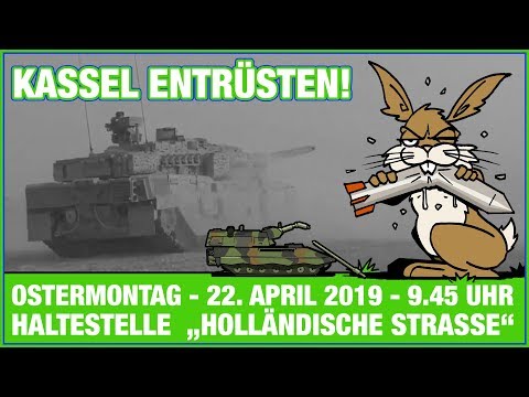 Im nordhessischen Kassel "peppen" wir den Ostermarsch etwas auf und sagen: Kassel entrüsten! Rheinmetall, Krauss-Maffei Wegmann, Airbus – unsere Stadt beherbergt einige der größten Rüstungsproduzenten des Landes. Dabei sorgen die Waffen aus Kassel in vielen Regionen der Welt für Unheil: Mit Leopard-Kampfpanzern aus unserer Stadt geht die türkische Armee gegen die Kurdinnen und Kurden in Nordsyrien vor. Und auch die sich feindlich gegenüberstehenden Regime von Katar und Saudi-Arabien wurden mit Waffen aus Nordhessen hochgerüstet. Geht mit uns dagegen auf die Straße: Am Ostermontag, den 22. April 2019 um 9.45 Uhr ab der Tram-Haltestelle „Holländische Straße“. Fordert mit uns den sofortigen Stopp aller Waffenexporte und die Umwandlung der Rüstungsbetriebe hin zu ziviler Produktion! Seid laut und kommt bunt – wir bringen unsere Soundsystem mit: Rüstungsindustrie? Wegbassen! Kassel? Entrüsten!